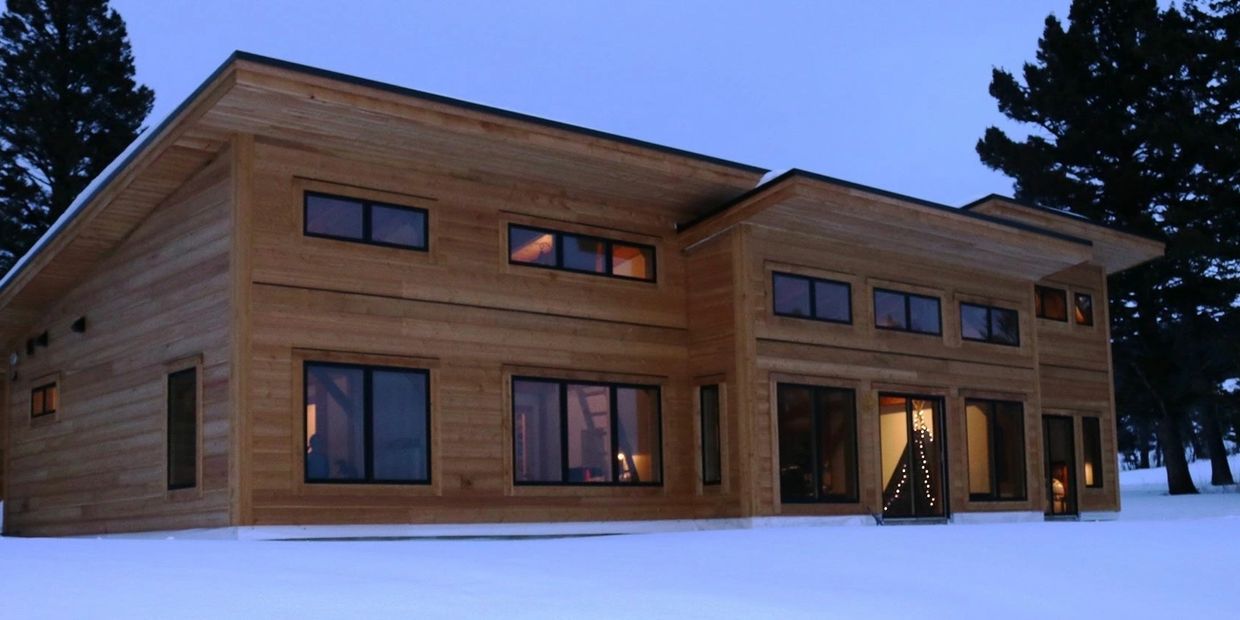In the foothills of Whitefish Mountain, this family home is built of standing dead Douglas fir timbers and enclosed with Structural Insulated Panels (SIP's). The "owner-builders" were involved every step of the way - from design and building the foundation, to working alongside Tom in the shop cutting the frame, to installing the last piece of trim and landscaping. Home and frame/joinery design by Tom Healy